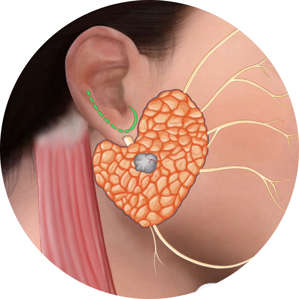 This surgery removes lumps or tumors from the parotid (salivary) gland near the ear. It is done with care to protect facial nerves and ensure safe removal of abnormal tissue.